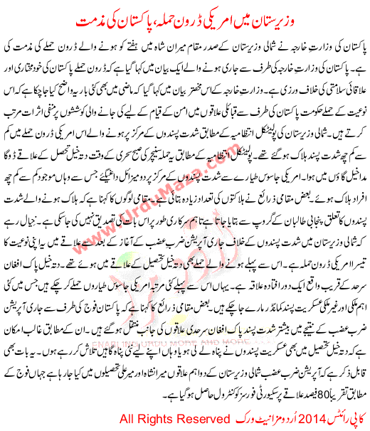 Pakistan Condemns U.s. Drone Attack In Waziristan