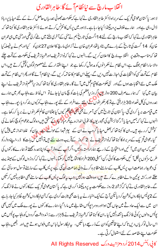 New Method Will Coming From Inqlab Revolution Tahir Ul Qadri