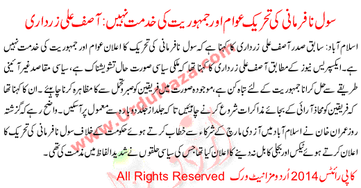 Civil Disobedience Movement Not Serve Democracy And Public Asif Ali Zardari