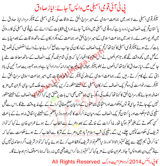 Pti Comes Back To The National Assembly Ayaz Sadiq