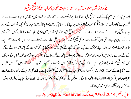 If The Matter Is Not Resolved In 2 Days Will Be Bloodshed Sheikh Rasheed