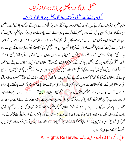 I Will Not Go On Holiday And Resign Nawaz Sharief