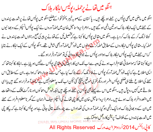 Hangu Police Station Attack 1 Dead