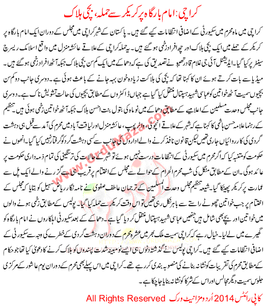 Karachi Imambargah Attacked With Cracker Girl Killed