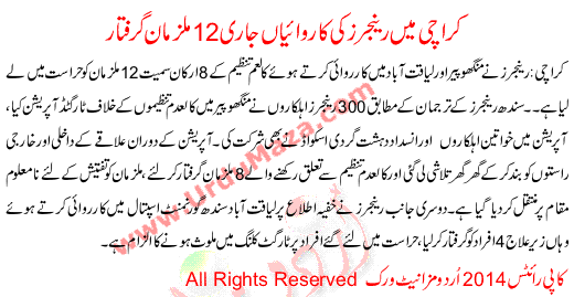 Rangers Continue Operations In Karachi 12 Accused Arrested