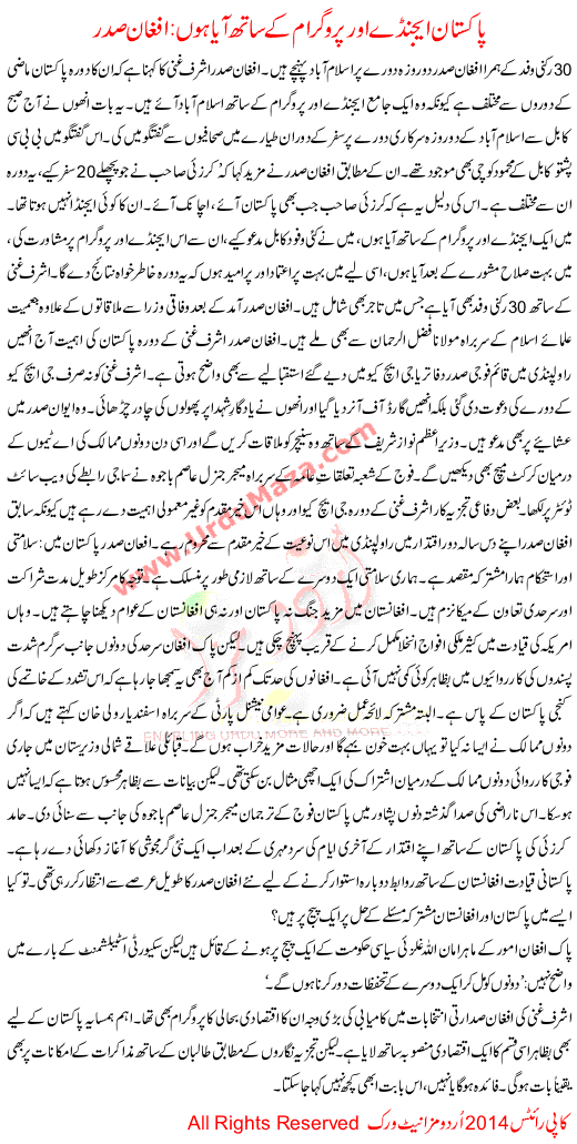 Come Pakistan With Ajenda & Programe Afghan Sadar