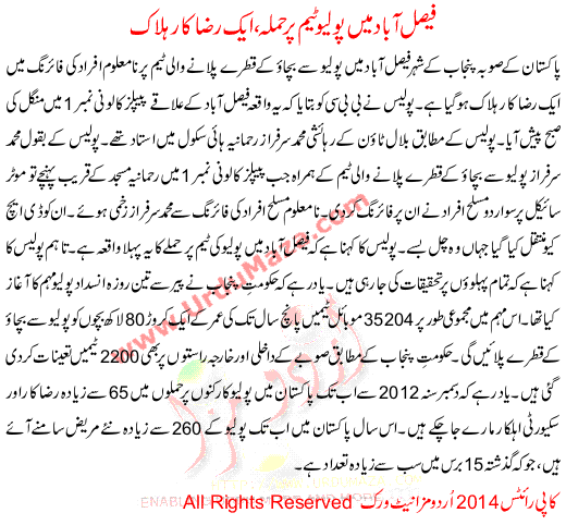 Polio Team Attacked In Faisalabad Killed A Volunteer