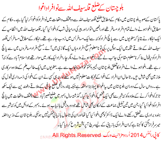 Qila Saifullah District Of Balochistan Kidnapped 9 People
