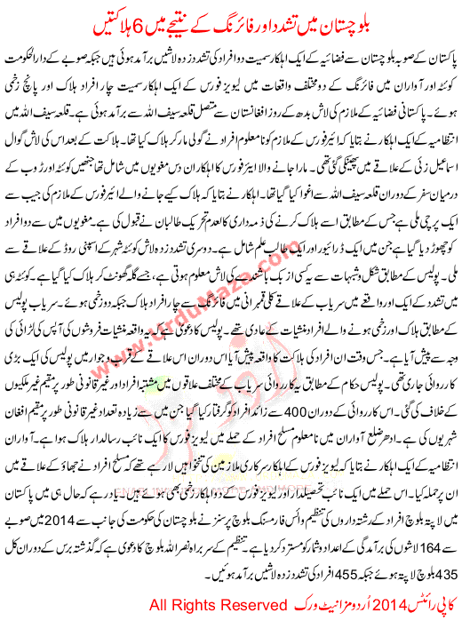 Violence And Firing In Balochistan As A Result Of 6 Deaths