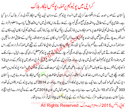 Attack Polio Team In Karachi 3 Police Man Dead