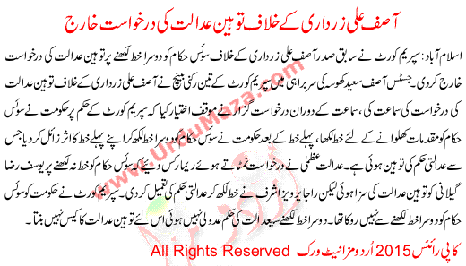 Contempt Of Court Dismisses Petition Against Asif Ali Zardari
