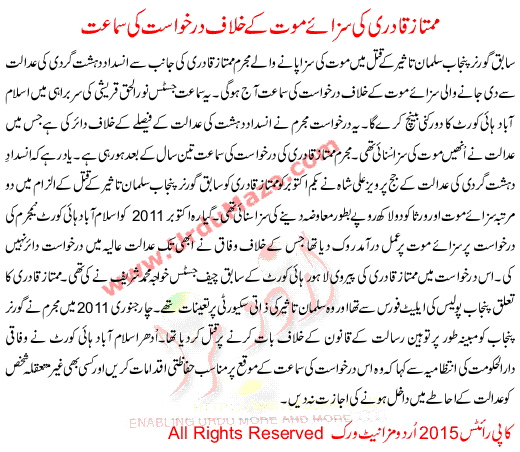 Hearing An Appeal Against The Death Sentence Of Mumtaz Qadri