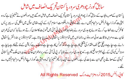 Former Governor Ch Server Joined Pakistan Tehreek Insaf