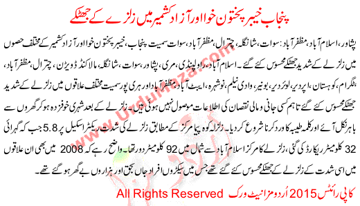 Earthquake Shocks In Kpk, Punjab And Azad Kashmir