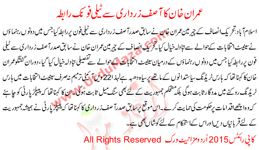 Telephonic Contact Between Imran Khan And Asif Ali Zardari