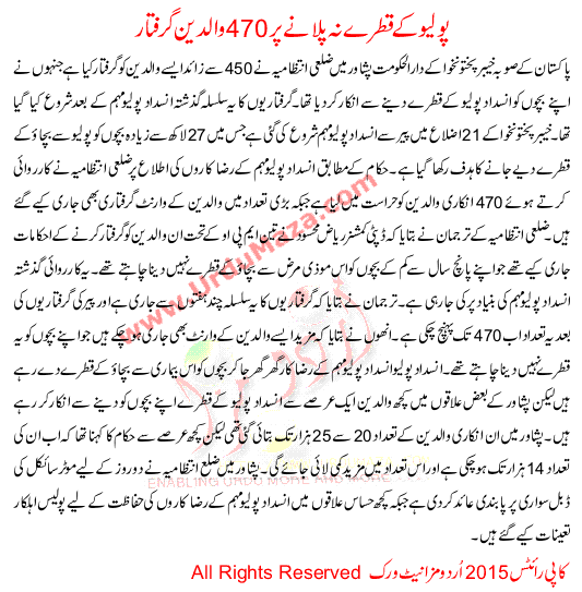 No Polio Immunization, 470 Arrested
