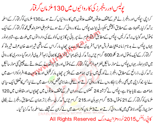 130 Suspects Arrested In Police And Rangers Operations