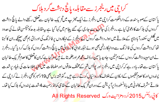 Competition From Rangers In Karachi 5 Terrorists Killed