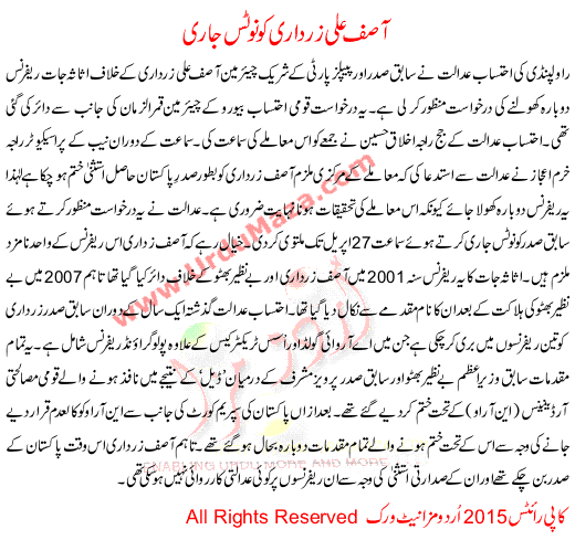 Asif Ali Zardari Issued A Notice