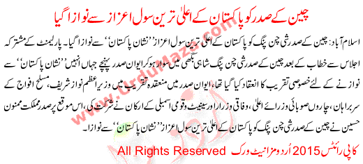Pakistan Has Been Honored Highest Civil Award From President Of China