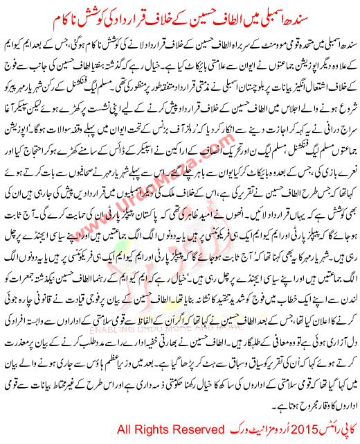 Sindh Assembly Resolution Attempt Failled Against Altaf Hussain