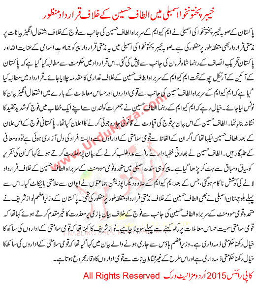 Kpk Assembly Passed Resolution Against Altaf Hussain