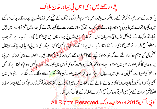 Dsp Bahadur Khan Killed In Peshawar Attack