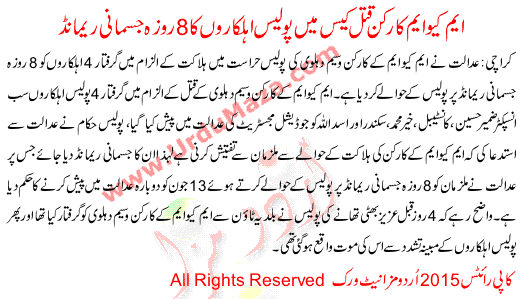 Murder Case Of Mqm Worker 8 Days Physical Remand Of Police Mans