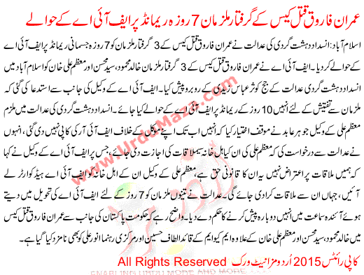 Imran Farooq Murder Case Suspect 7 Day Remand On Fia