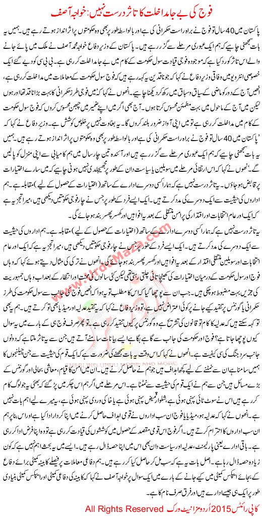 Army Undue Interference Denies Khawaja Asif