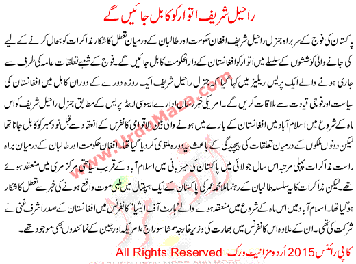 Raheel Sharif Will Go To Kabul In Sunday