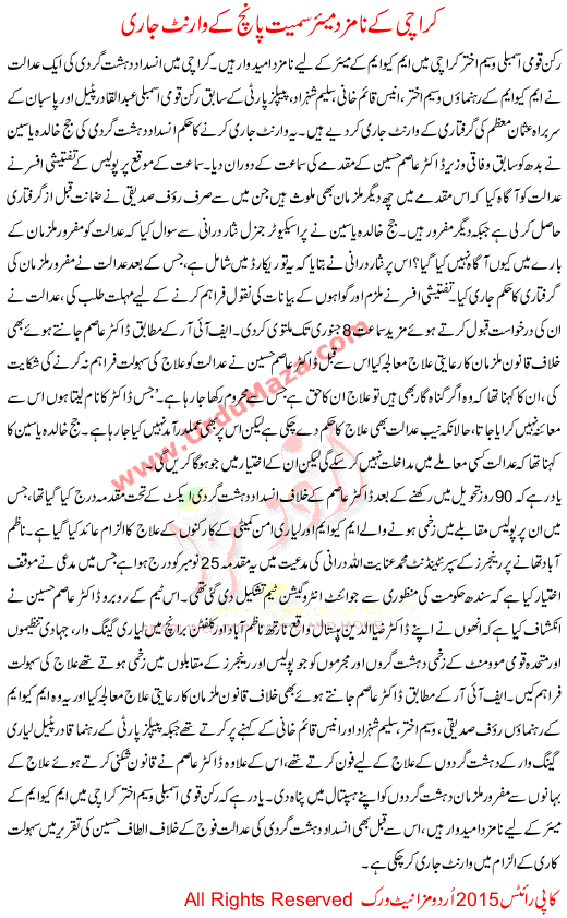 5 Warrants Issued Including Nominated Mayor Of Karachi