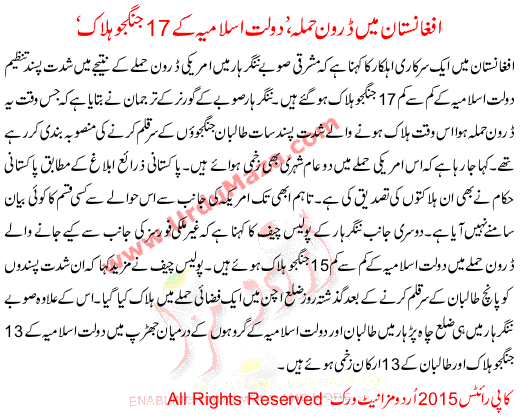 17 Islamic Fighters Killed In Afghanistan Drone Attack
