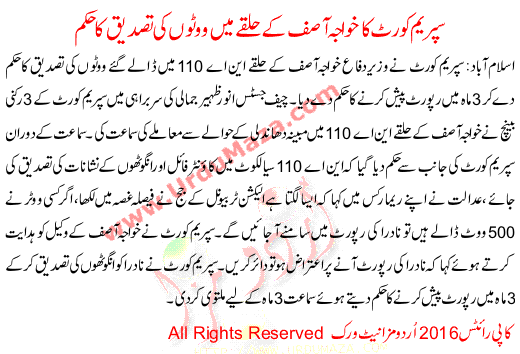 The Supreme Court Confirmed Vote In Khawaja Asif Constituency