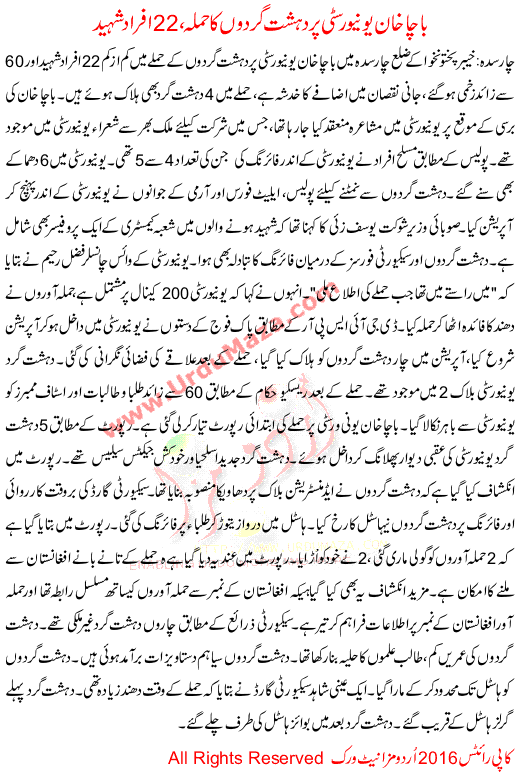 Terrorist Attacked On Bacha Khan University 22 Shaheed