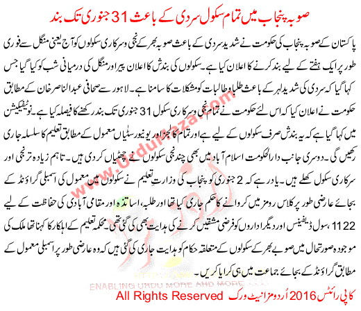 All Schools In Punjab Province Until January 31 Because Of The Cold