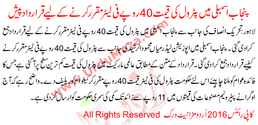40 Price To Set Per Liter Of Petrol In Punjab Assembly The Resolution Submitted