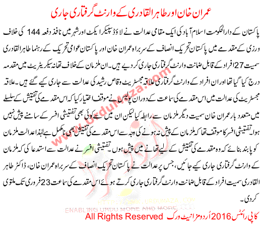 Issued Arrest Warrant Of Imran Khan And Tahir Ul Qadri