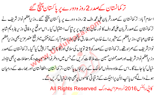 Turkmenistan President Arrives On Two-day Visit To Pakistan