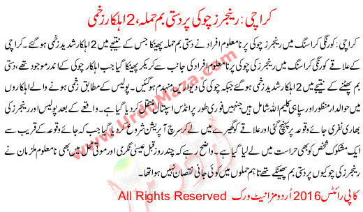 Karachi Grenade Attack On Rangers Checkpoint 2 Injured