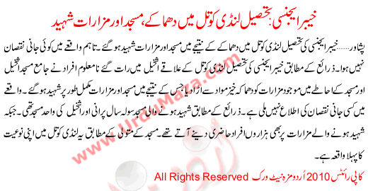 Blast Smashes Mosque Shrines In Khyber Agency