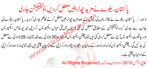 Pakistan Railway Na Mazeed 6 Trains Motal Kr Di