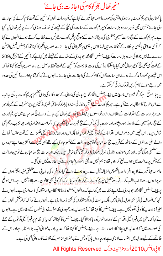 Ghair Fayal Judges Ko Kaam Ki Ijazat Di Jaye
