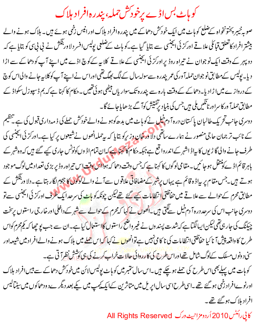 Kohat Bus Ade Per Khud Kush Hamla
