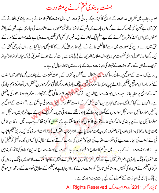 Basant Pr Pabandi Khtm Krnay Pr Mushawrat