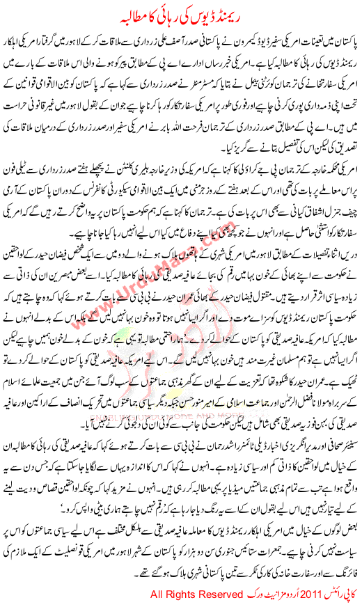 Ramed Davis Ki Rehai Ka Mutalba