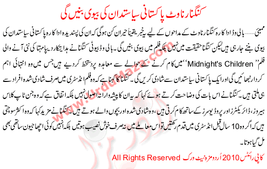 Kangana Ranaut Pakistani Syastdan Ki Bevi Banen Ge