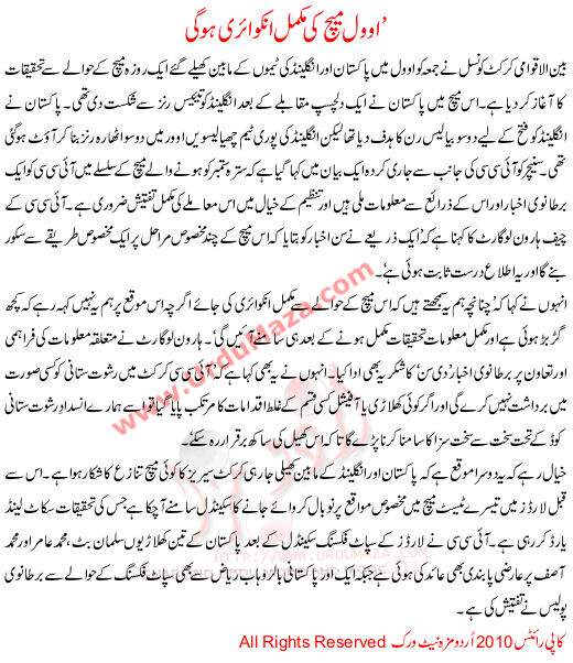 Ovel Match Ki Mukamal Inquiry Ho Ge