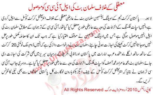 Moatli K Khilaf Salman Butt Ki Appeal Icc Ko Mosool