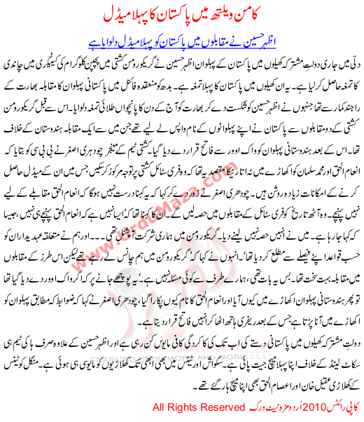 Common Wealth Ma Pakistan Ka Pehla Medel